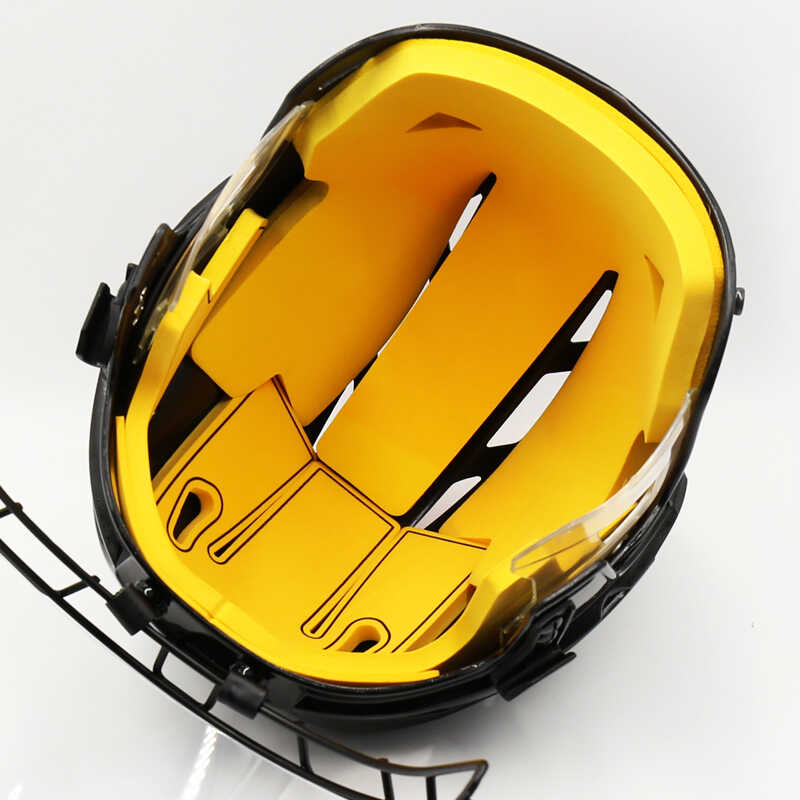Capacete de hóquei no gelo com forro impresso em fibra de carbono 3D