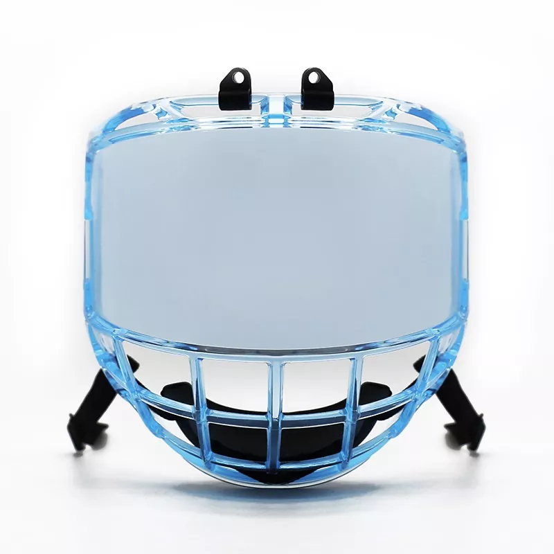 Visibilidade aprimorada: O design da bolha otimiza a visão periférica. Os jogadores podem ver claramente a superfície do gelo, os oponentes e o disco enquanto seus rostos permanecem bem protegidos, melhorando seu desempenho durante o jogo.