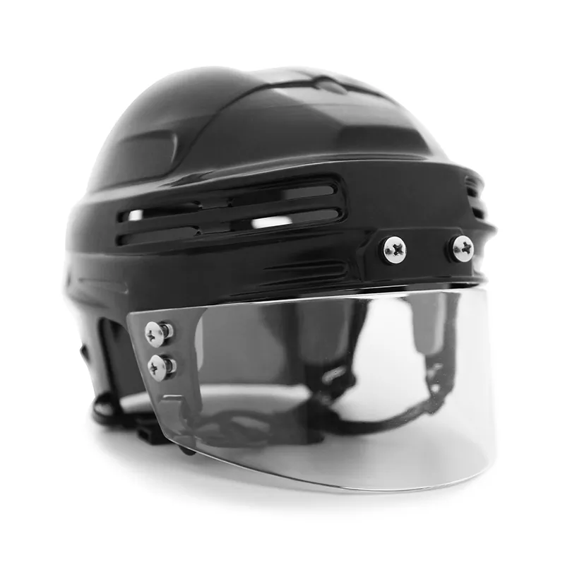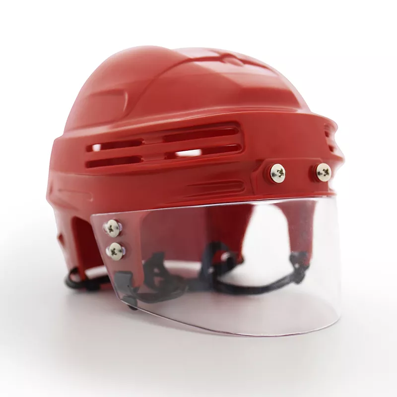Este elegante conjunto de mini capacete de hóquei no gelo com viseira apresenta um design elegante e cores vivas do time, tornando-o um complemento ideal para a coleção de recordações de qualquer torcedor. A viseira incluída não só melhora a sua aparência autêntica, mas também fornece proteção extra durante o jogo. Leve e durável, este minicapacete é perfeito para exibição ou brincadeiras imaginativas, estimulando o amor pelo jogo desde cedo.