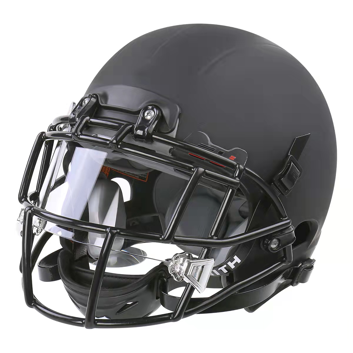 Projetada para uma consciência situacional descomprometida, nossa viseira de futebol comprovada em combate apresenta policarbonato de grau óptico com filtragem UV400+ permanente – bloqueando 99,9% dos raios nocivos enquanto mantém uma visão cristalina e sem distorção. Excede os padrões ASTM F803-19 para impactos de alta velocidade, com a confiança de programas de elite, desde Friday Night Lights até equipes de desenvolvimento XFL.