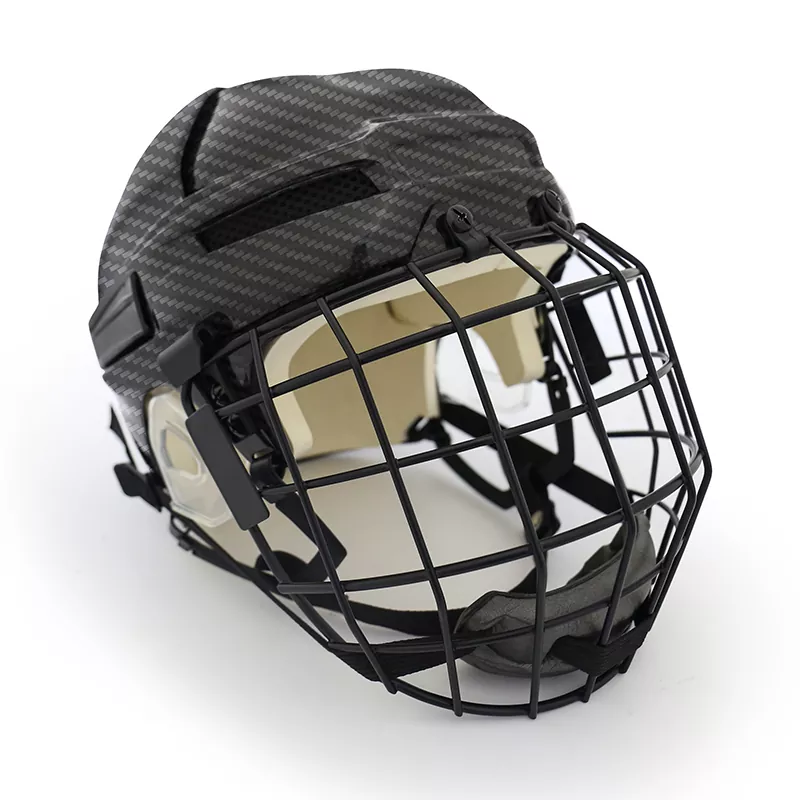 Capacetes de hóquei no gelo personalizados: forro de fibra de carbono impresso em 3D para proteção superior